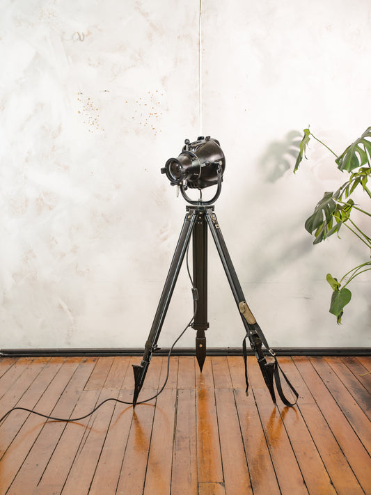 Vintage Strand Patt 23 Theatre Spotlight Lamp on Tripod, Upcycled 1960s English Stage Light, Industrial Floor Lamp, The Pig Nose