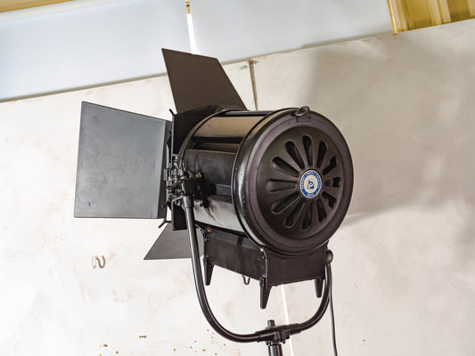 Vintage Berkey Italia Film Spotlight Floor Lamp on Industrial Tripod | Hollywood Studio Light | Cinematographer Decor