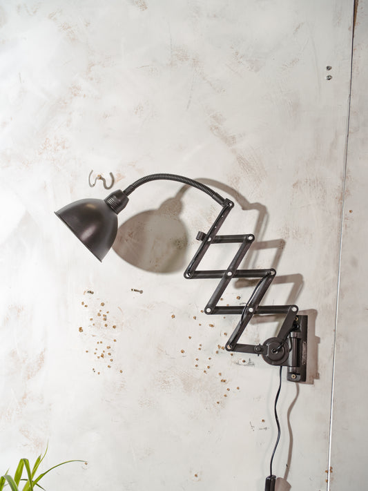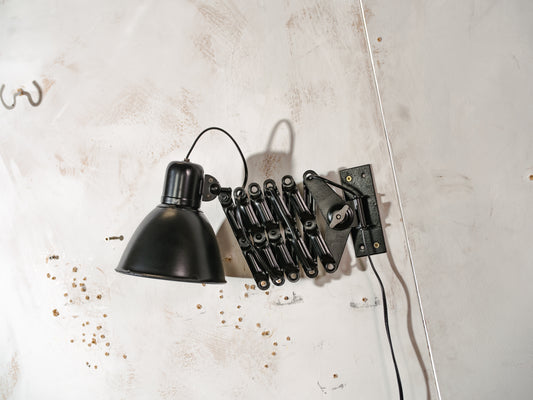 Early 1930s SIS Frankfurt XXL Scissor Lamp, Antique Adjustable Black renovated Bauhaus Wall lighting