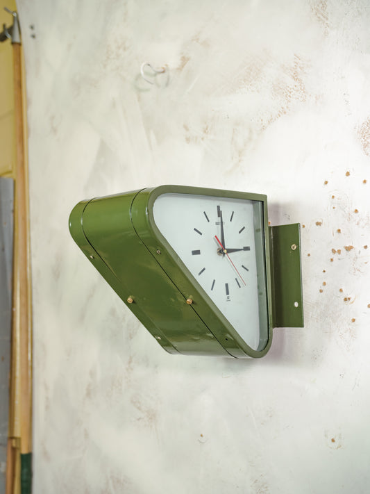 Vintage Seiko Double Sided Wall Clock, Industrial Submarine Triangle shaped Timekeeper, Restored Retro Green Slave Clock, 1980s Japan