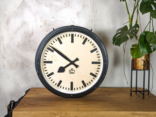Grande Double sided Station Clock by CTW Ø75CM / 29.5 Inch, Carl Theodor Wagner 1950s, Large Industrial Factory Timekeeper
