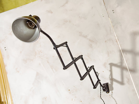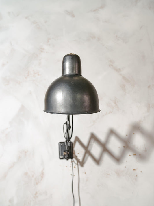 Scissor Lamp Hala 1930s, Black Workshop lamp, Rare Wall Mounted Harmonica Light, Bauhaus Lampshade, Accordion Sconce