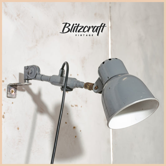 Small SIS Wall Lamp Swing Arm 1950s, Bauhaus Retro Gray Vintage Wall mounted light or Desk Mounted Lamp, Factory Machinery drawing lamp