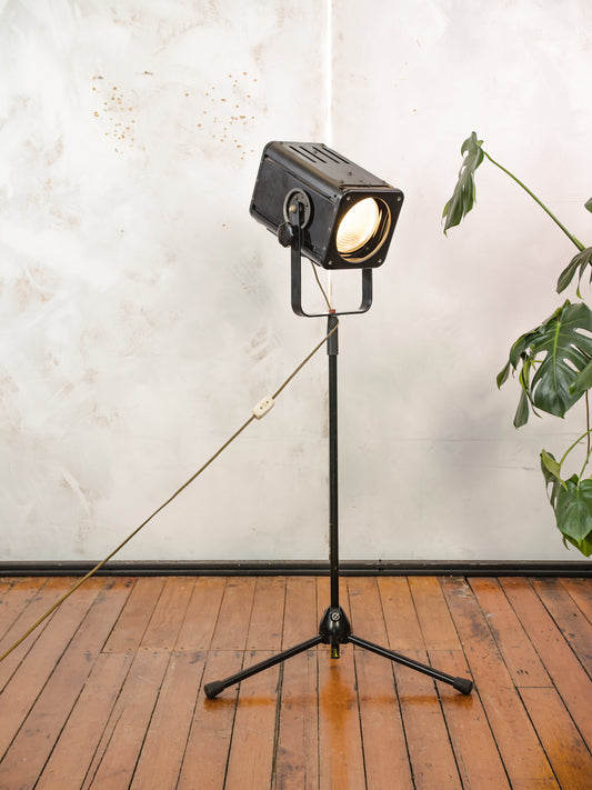 Vintage Rank Strand Theatre Light on Adjustable Tripod, Black Upcycled Industrial Floor lamp 1970s