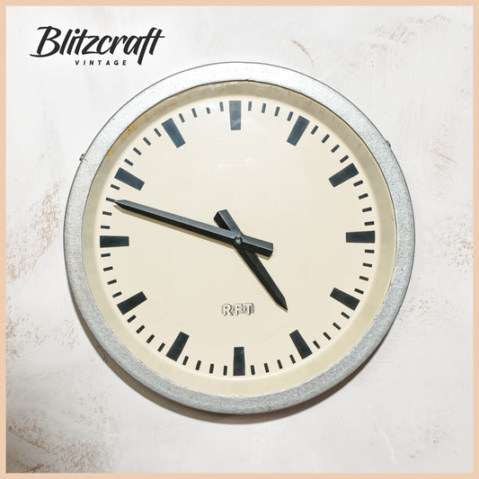 Industrial German 1960s Factory Clock by RFT, Gray workshop Quartz Timepiece, Made by Rundfunk und Fernmelde Technik