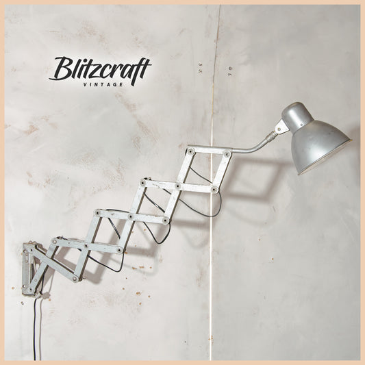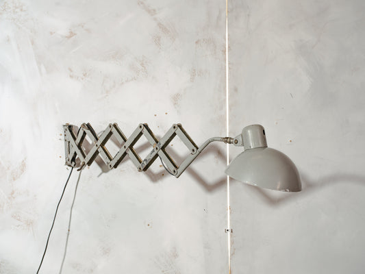 Industrial Gray Scissor Lamp by SIS, 1960s Adjustable Wall mounted light, Harmonica light, Accordion Workshop lighting