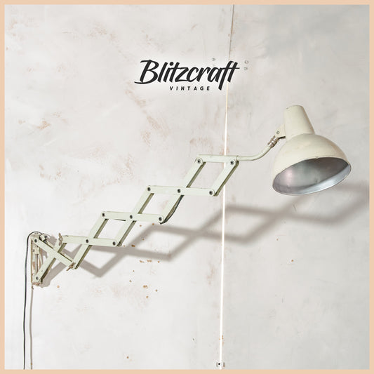 Industrial Beige Scissor Lamp by SIS, 1960s Adjustable Wall mounted light, Harmonica light, Accordion Workshop lighting