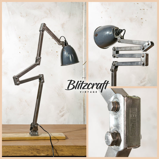 MEMLITE 5 Arm Steel Industrial Engineer Desk Lamp, RARE Vintage 1950s Mid-Century Renovated Machine Lamp
