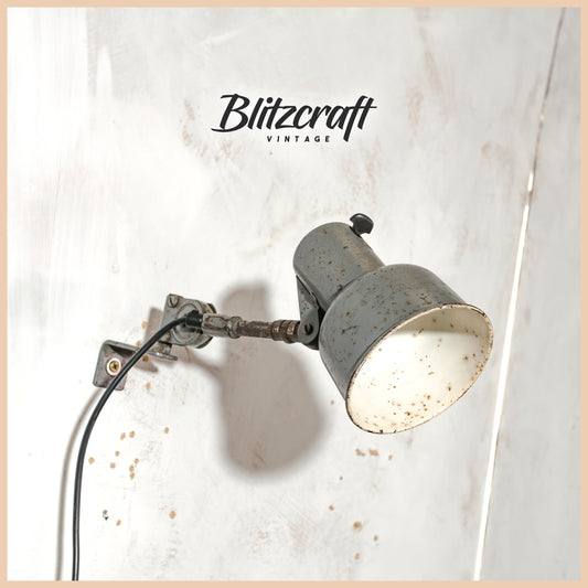 Tiny SIS Wall Lamp Swing Arm 1950s, Bauhaus Rustic patina Gray Vintage Wall mounted light or Desk Mounted Lamp, Factory Machine drawing lamp