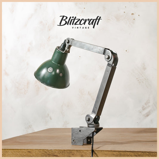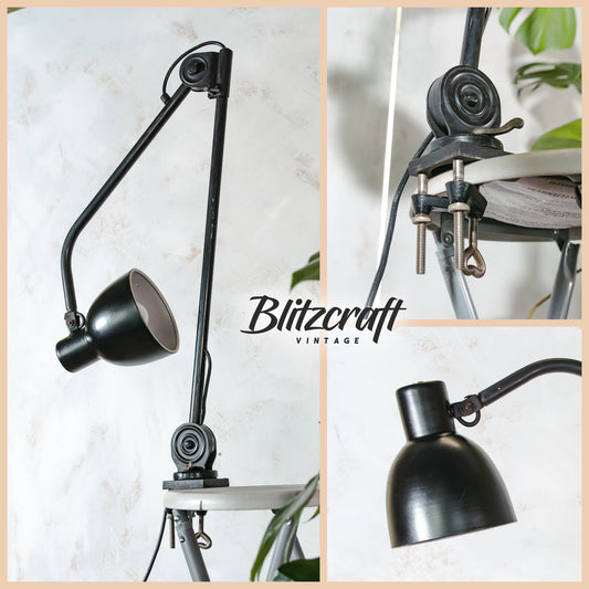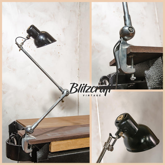 HALA ZEIST Model 122 H. Busquet 1940s 2 Arm Clamp Table lamp, Antique Bauhaus Factory Workshop light