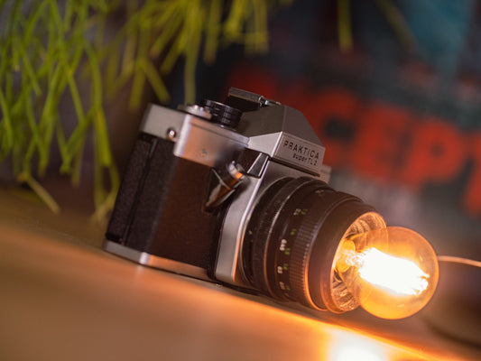 Photo Camera light, Praktica Super TL2 1970s Camera lamp upcycled SLR into Bed side lamp, Unique gift Photography, Unique lighting