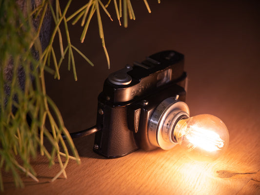 Analog Camera Table lamp, Beirette 1960s Desk lamp, Photographers office lighting, Photography Bedside light, Unique Sideboard lamp gift