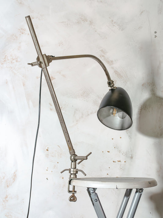 HALA ZEIST Clamp Lamp H. Busquet 1950s, Table top light, Chrome and black, Unique Antique Bauhaus Factory Workshop light