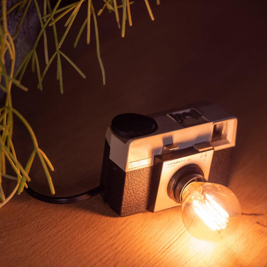 Camera Lamp, Small Bedside Kids Light, Kodak Instamatic 25 Vintage Film camera desk lamp, Unique handmade upcycled lamp, Gift Photographers