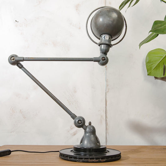 French Jieldé Work shop Lamp 2 Arm 1950s, Factory Style Articulating Jielde Table light, Gray Industrial office Desk lamp, Rustic decor
