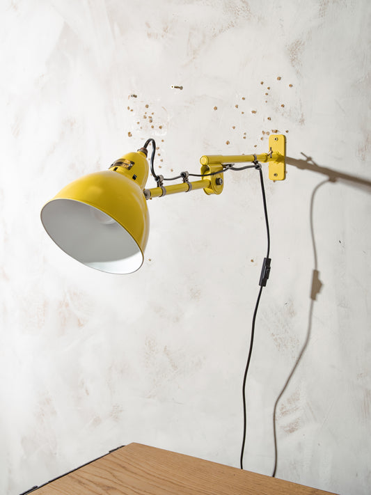 Antique 1940s Hala Zeist 2 Arm Wall light or Table lamp, Vintage Factory Workshop light, Renovated Bright Yellow Desk lighting, Dutch Design