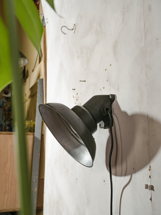 Vintage Farmhouse Wall Lamp, Unique Industrial Factory Lighting, Machine Black Sconce with Patina