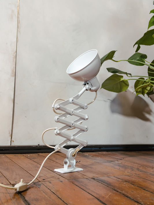 1930s SIEMENS Scissor Lamp with FABRILUX enamel lampshade, Industrial Wall Mounted Task Lighting