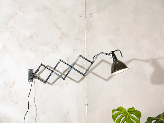 FABRILUX Scissor Lamp 1930s, Antique Bauhaus Light, Harmonica Wall Mounted Lighting, Workshop lamp RARE Dr. Ing. Schneider & Co
