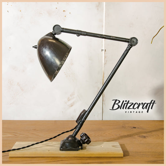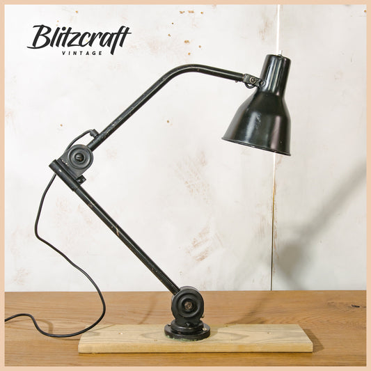 Fabriekslamp Midgard-stijl met Eric Kirkman Cole, 2-armige scharnierende wandlamp of tafellamp, vintage bureaulamp