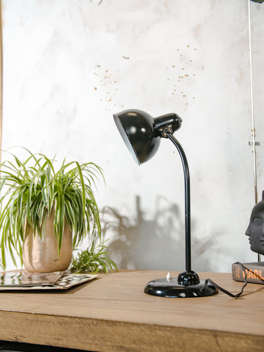 Kaiser Idell 6556 Bureaulamp Zwart, Bauhaus ontwerp van Christian Dell, Jaren 40 Vintage Tafelverlichting, Super Lampenkap