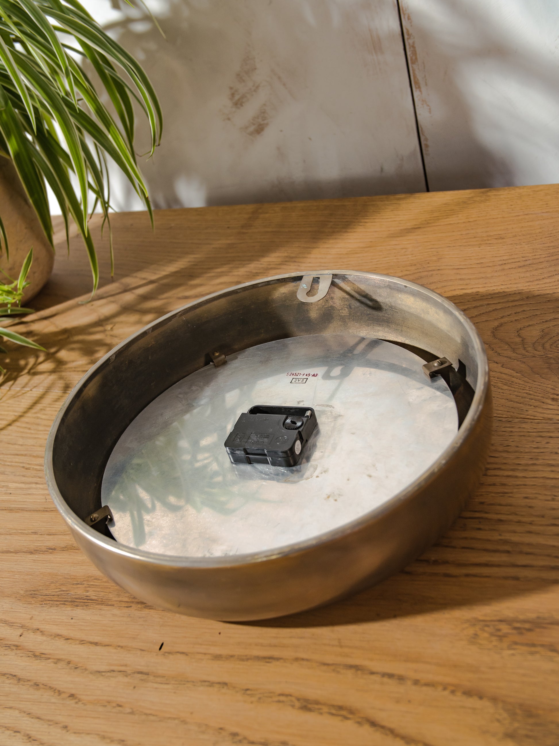 The clock has been converted to a modern, quiet Quartz clockwork that works on a single battery. We kept the original pointers/clockhands.