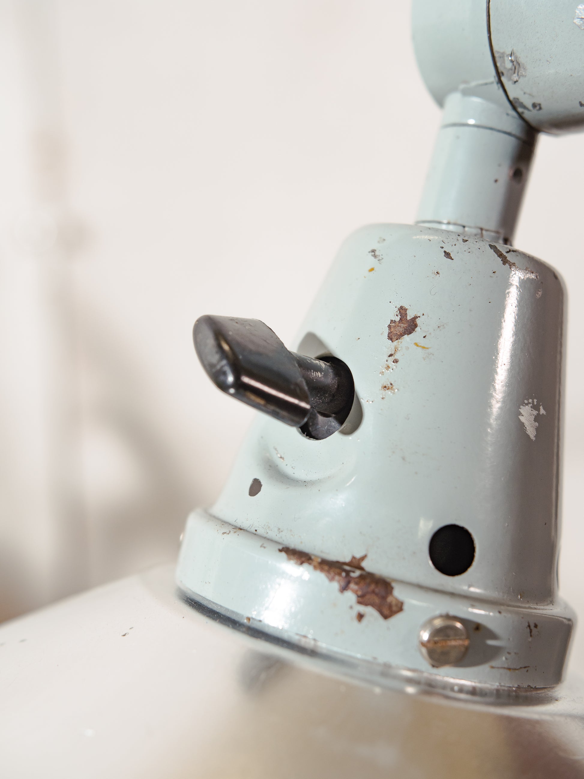 Midgard, founded in the early 20th century, became famous for its innovative and highly functional lighting systems. Their lamps were used in workshops, factories, design studios, and even by legendary modernist architects. The R2 model is one of their most collectible pieces, celebrated for its mechanical precision, elegant simplicity, and fully adjustable arm.