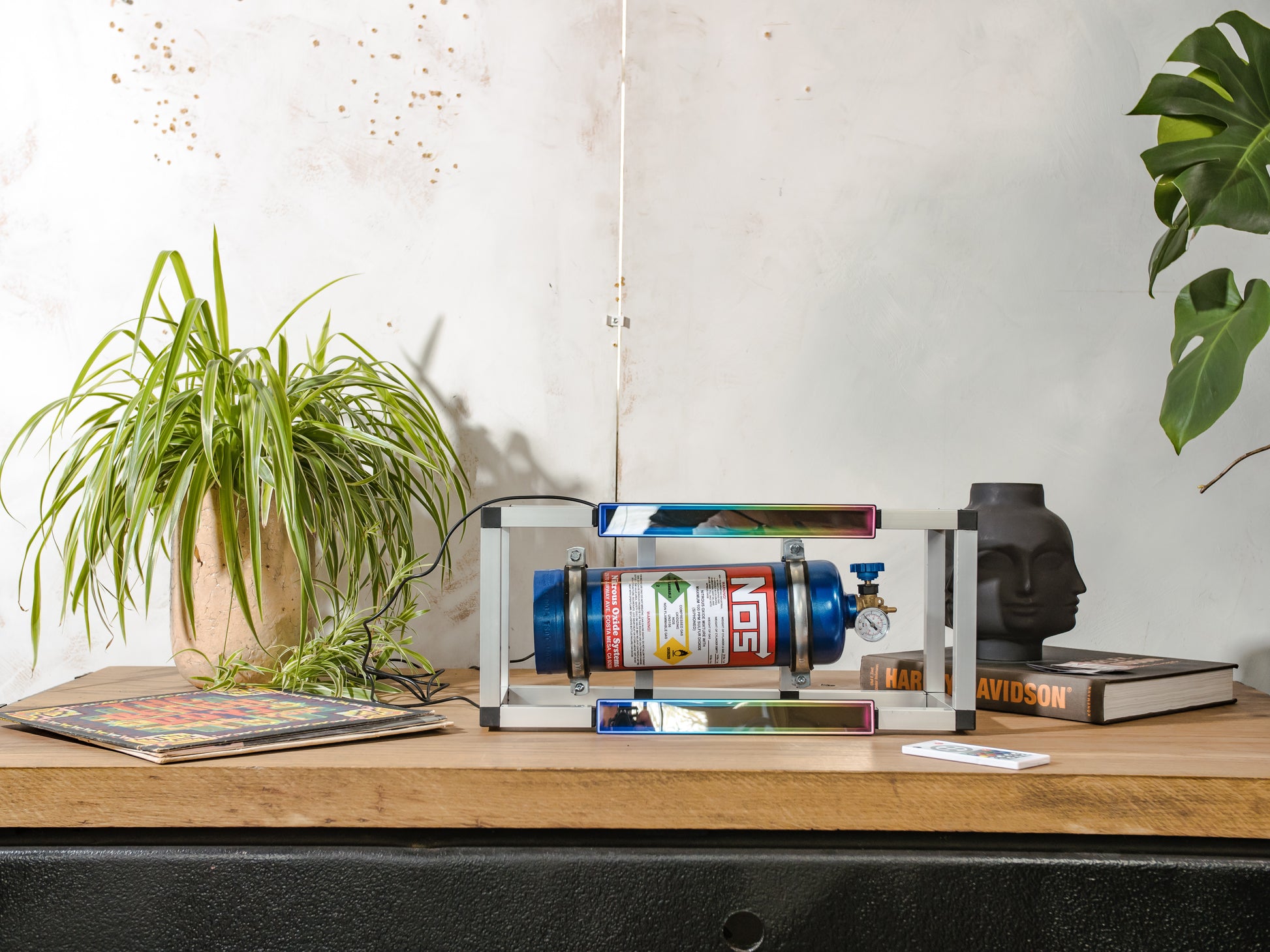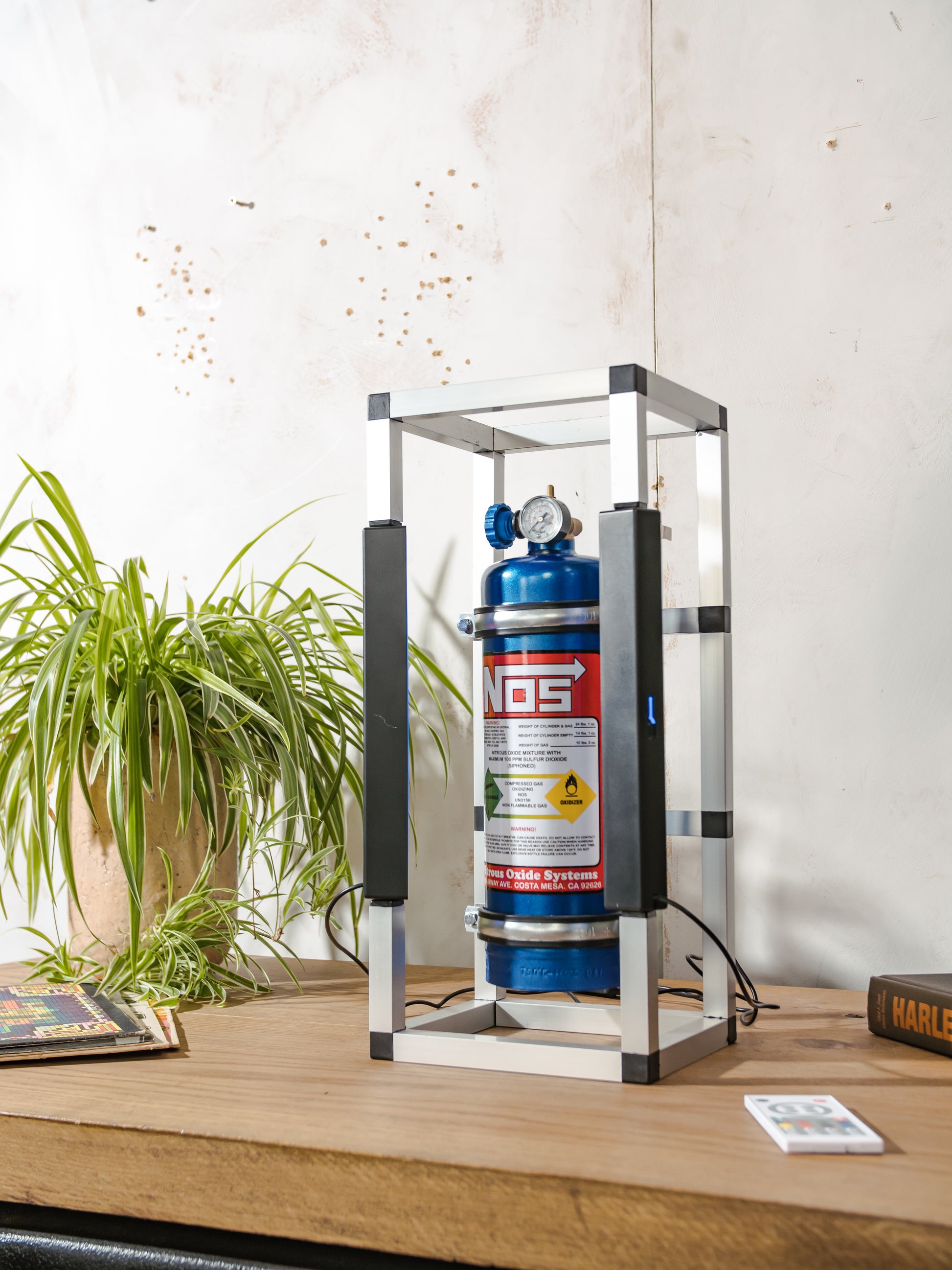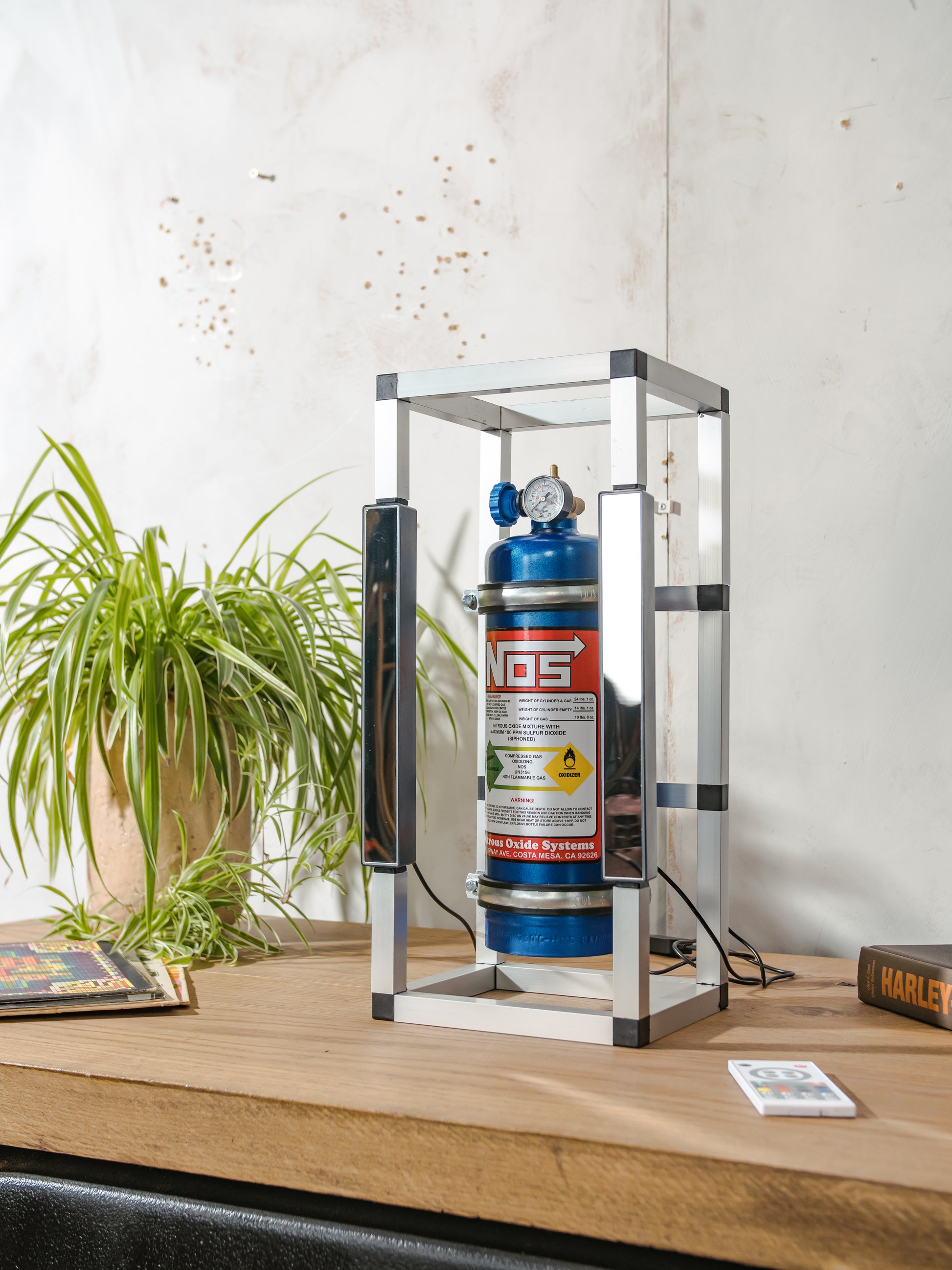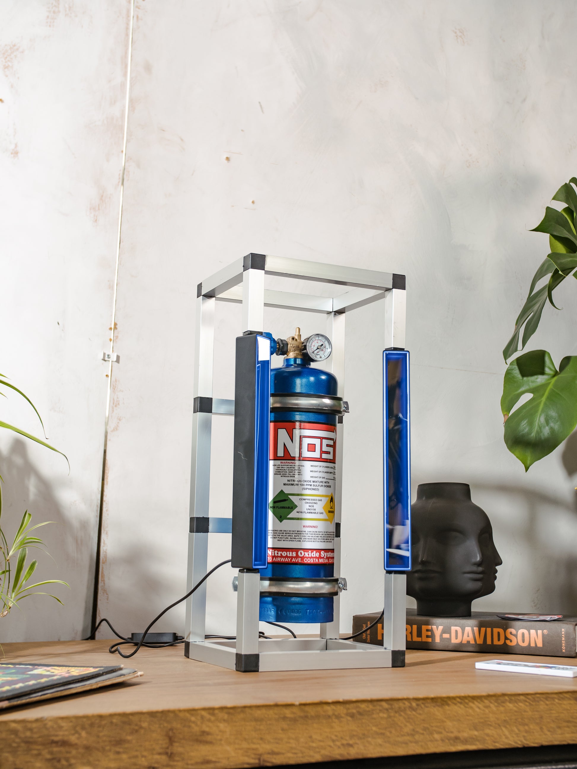 Bring the thrill of the racetrack into your home with this NOS Nitrous Lamp, built from a real 3KG fire extinguisher and reimagined as an electrifying light sculpture. The design captures the raw spirit of street racing, with a polished industrial finish that looks incredible both on your desk or mounted on the wall.
