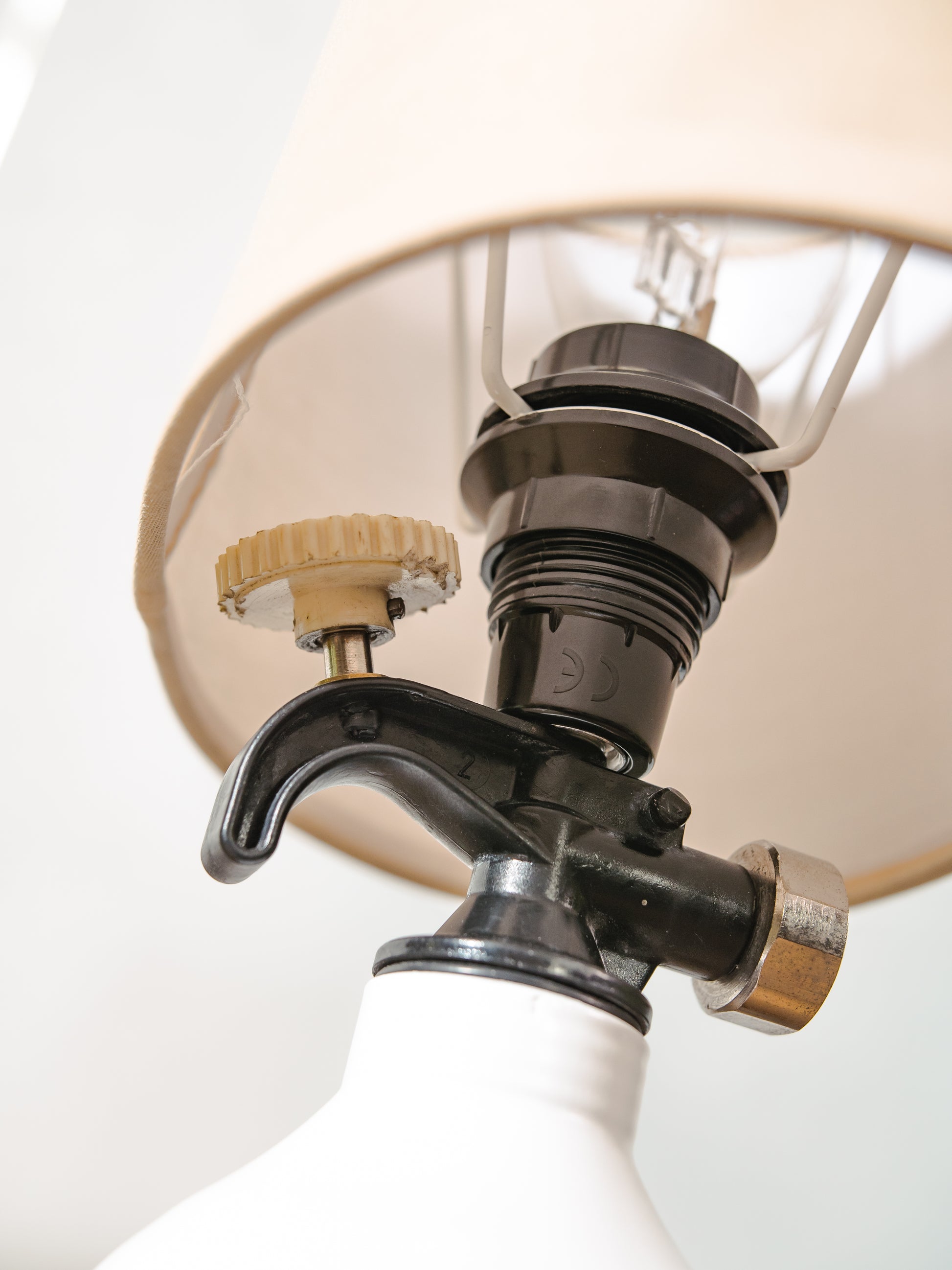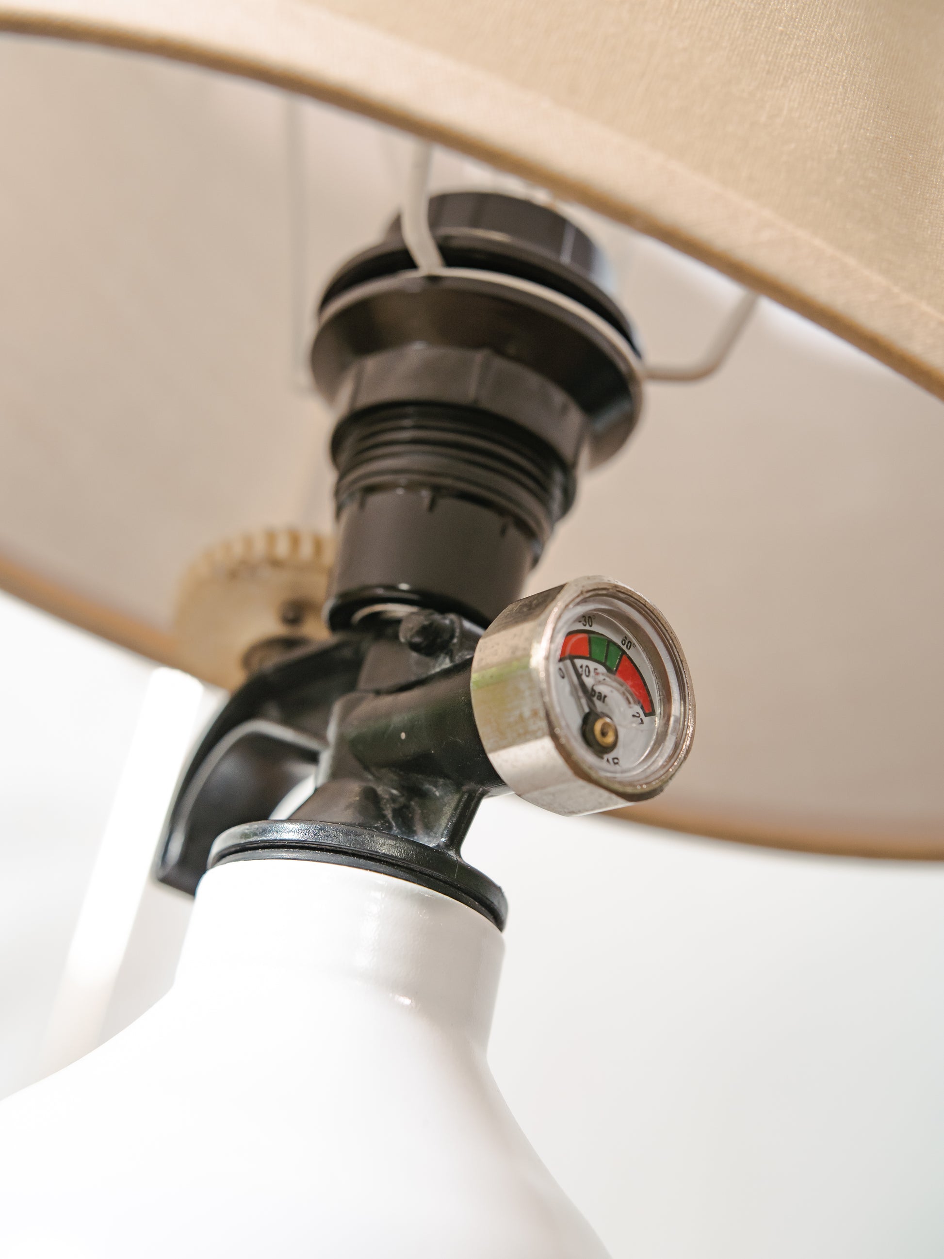 Hand-prepared, sanded, painted, and rewired using premium components. The white finish combined with the lampshade gives it a sleek, modern edge while preserving the raw industrial soul of its origins. We added a NX label and includes pressure meter & rotary knob (only for looks)
