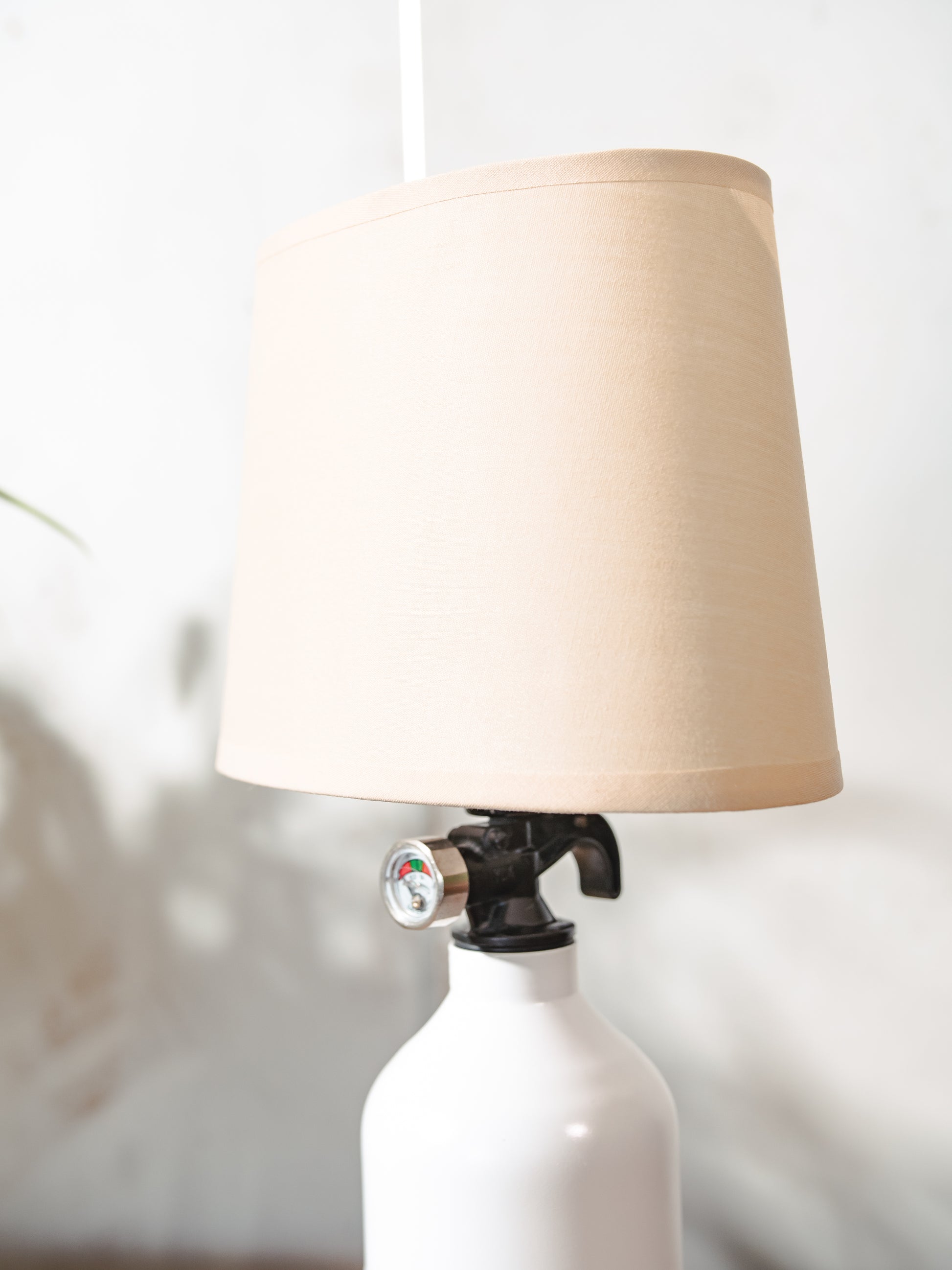 NX Nitrous Express Desk Lamp, White Bottle Metal, Upcycled Fire Extinguisher Tuning Light, Car Enthusiast Gift, Racing Decor, with lampshade